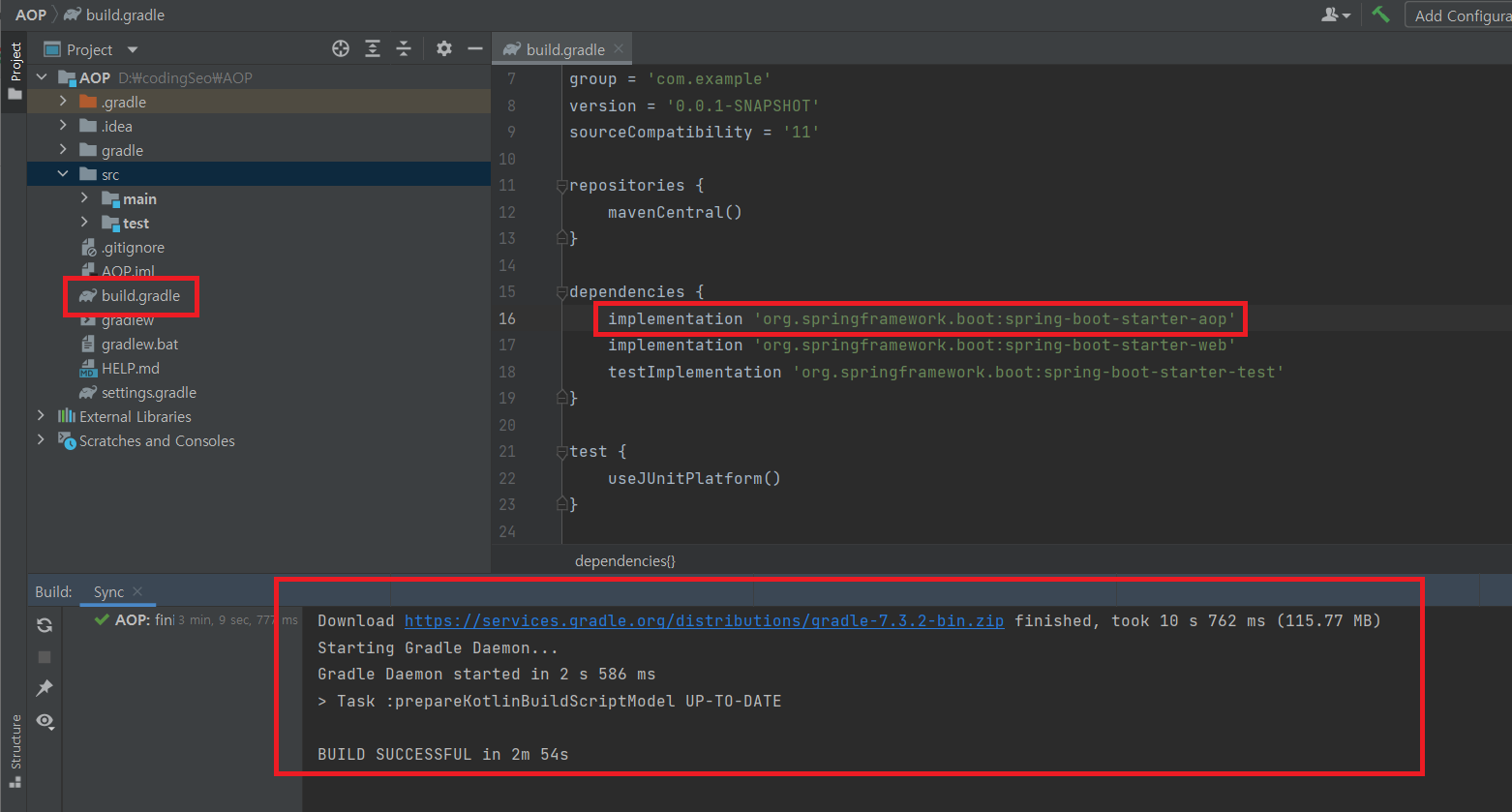 implementation 'org.springframework.boot:spring-boot-starter-aop' // 추가